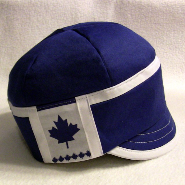 In honor of the Canadian Maple Leaf’s and female Maple Leaf fans, I decided to create a fun and eye-catching hat. It’s feminine yet splashes patriotism. And I had enough fabric to make three hats. Yay! Handmade by Sweetheart by Janna.
