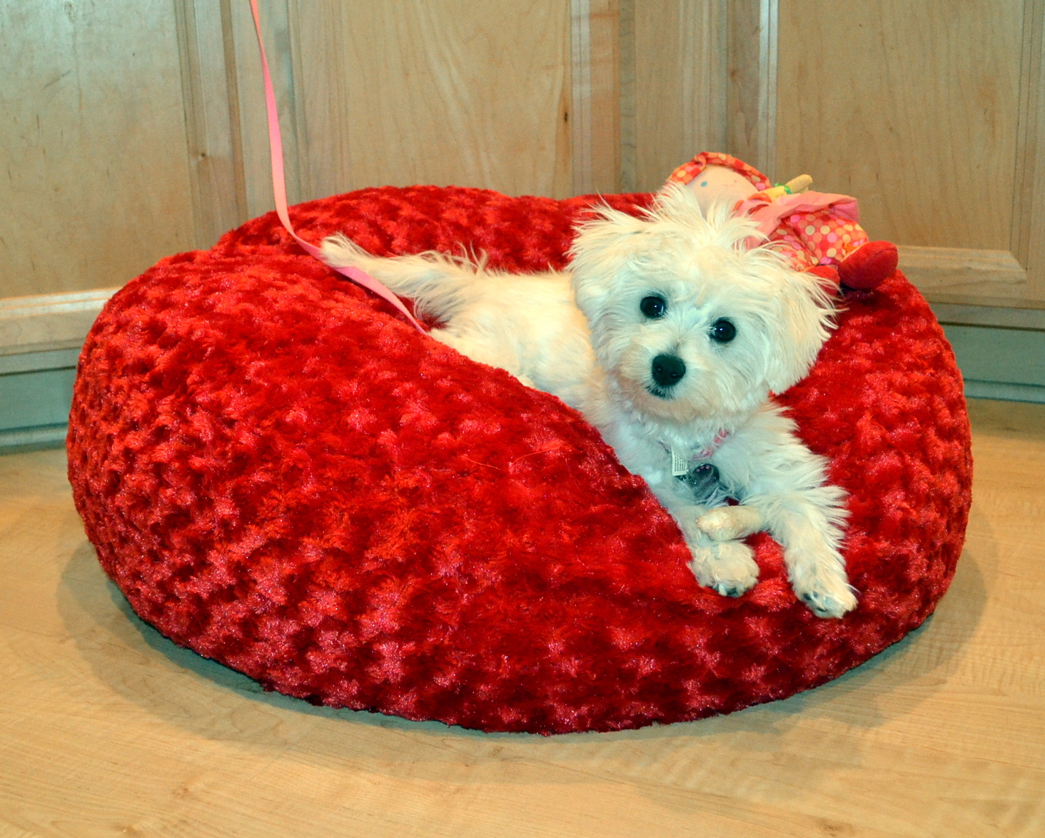 My Lily loves to chew, especially dog beds with zippers and foam. I decided she needed a more durable, chew-proof bed. 🙂 Erin Erickson has a free fleece dog bed tutorial on her web site (Dog under my Desk). www.erinerickson.com