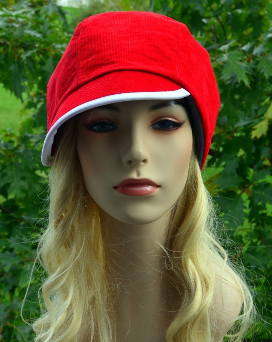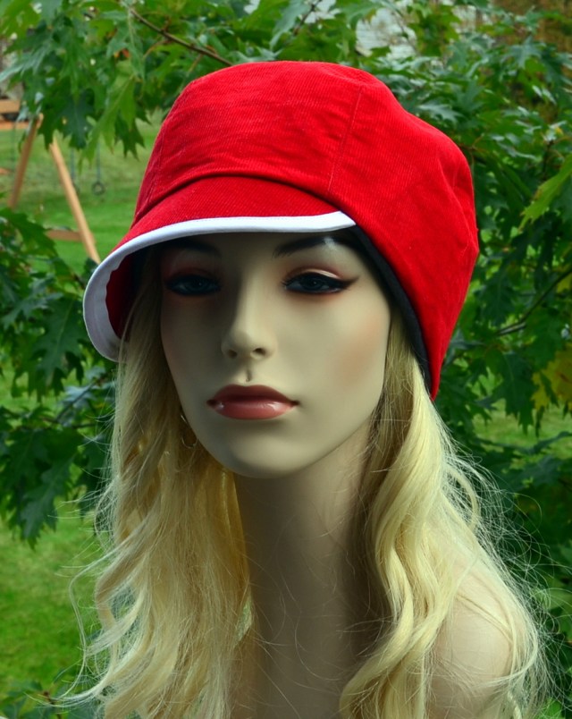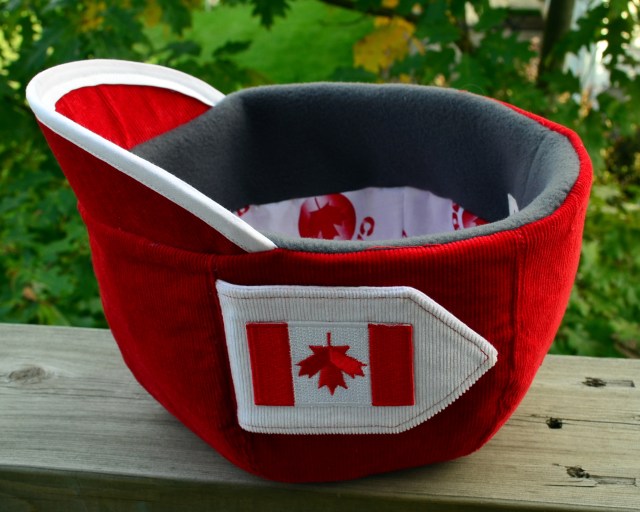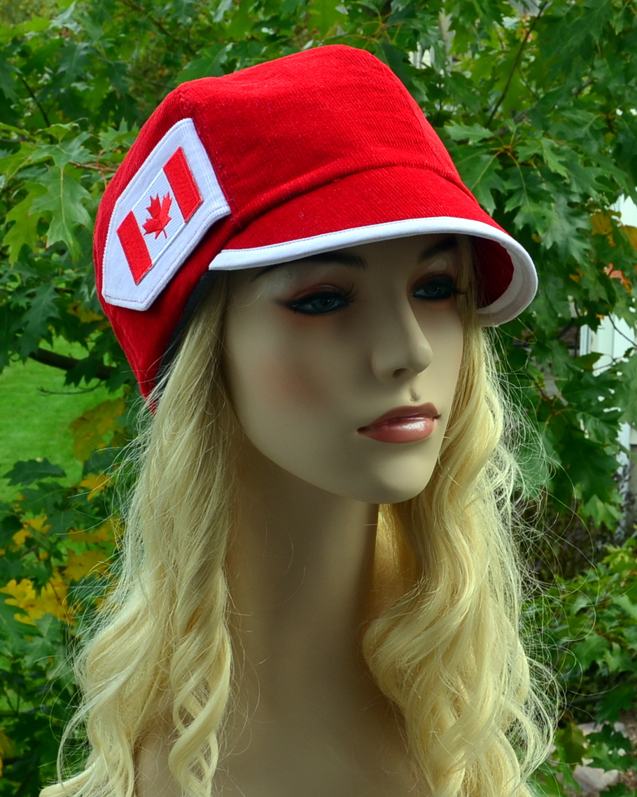 The weather is changing. Fall has arrived. My drive to make hats has returned. I couldn’t resist making this eye-popping red corduroy newsboy hat with an embroidered Canadian flag.