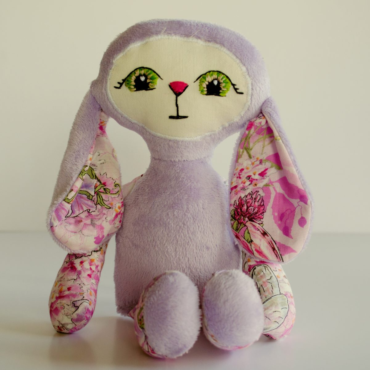 I love this light purple- pink 11 inch bunny. Soft and feminine, she is perfect for little hands.