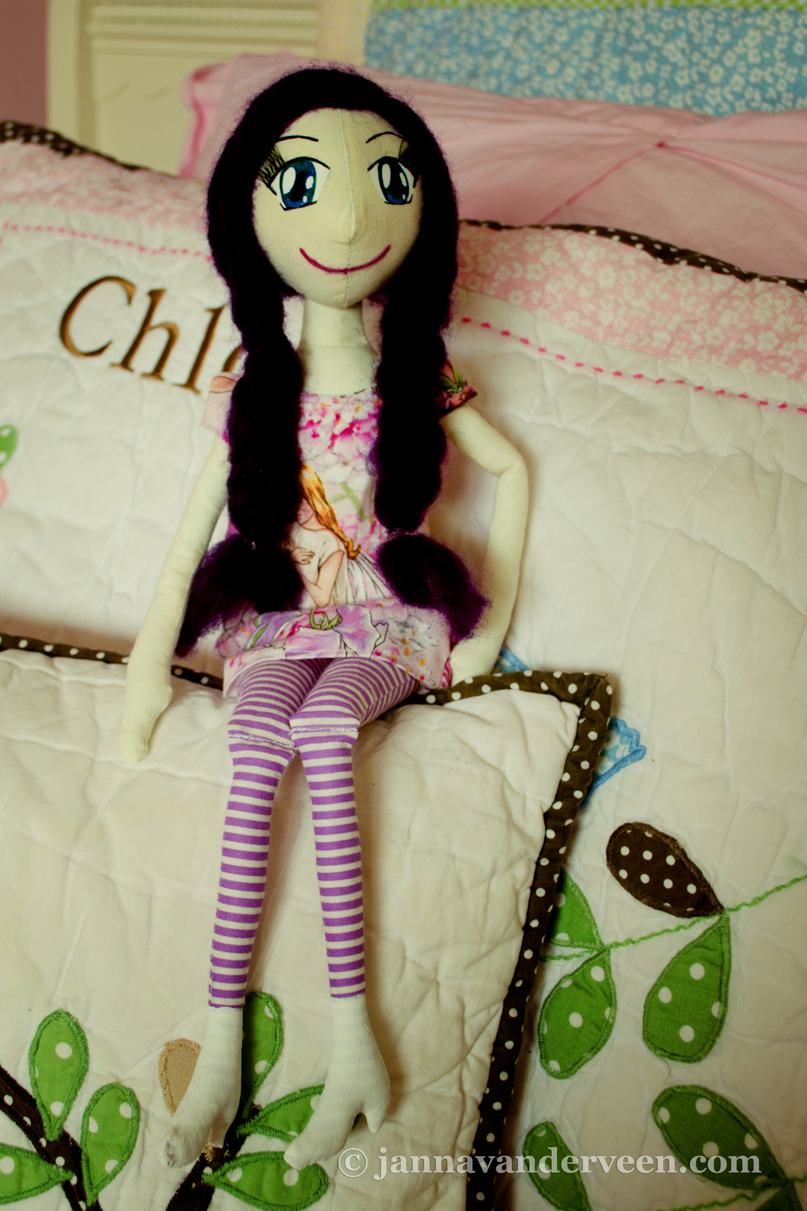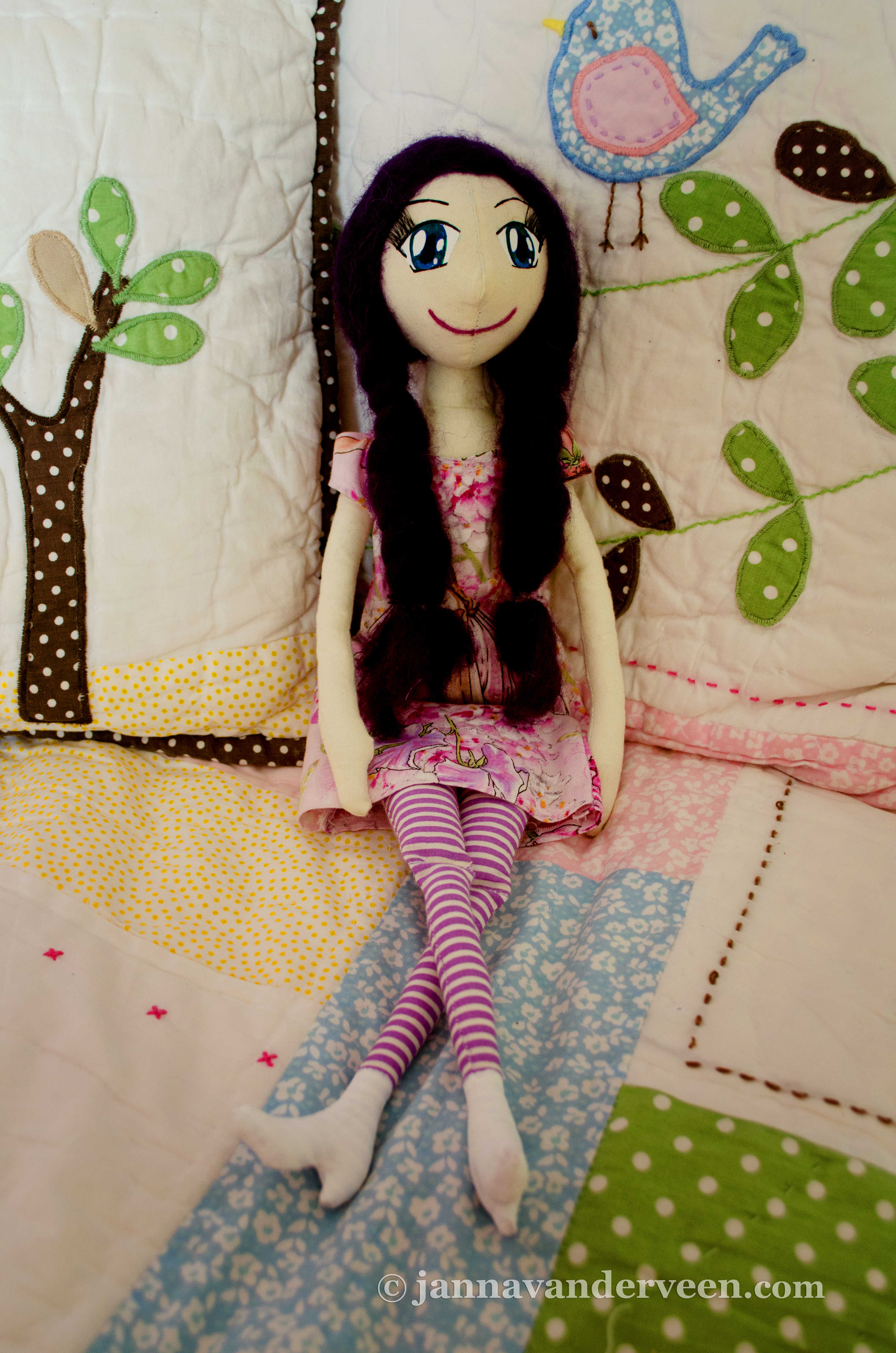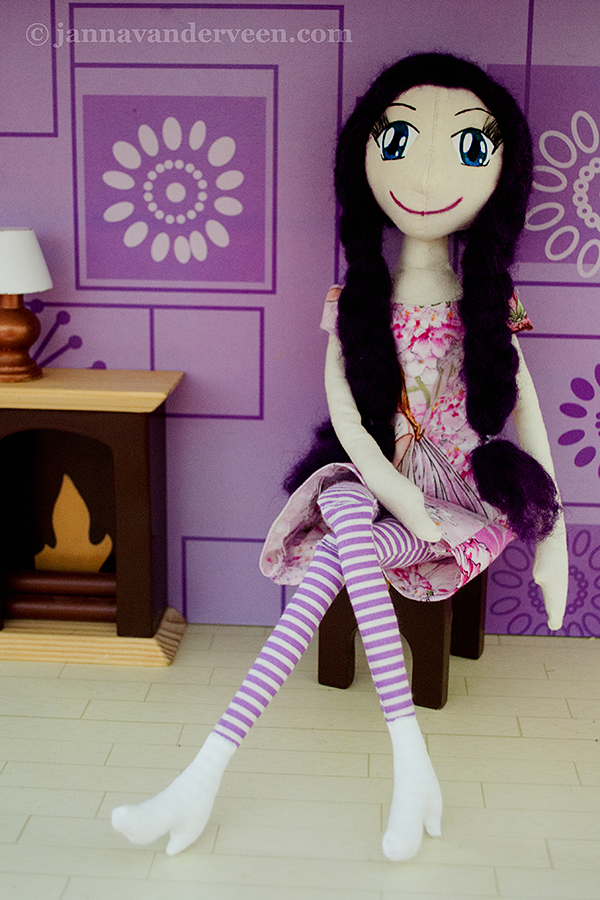 I had a tremendous amount of fun sewing this whimsical character, with her purple hair and big eyes.
