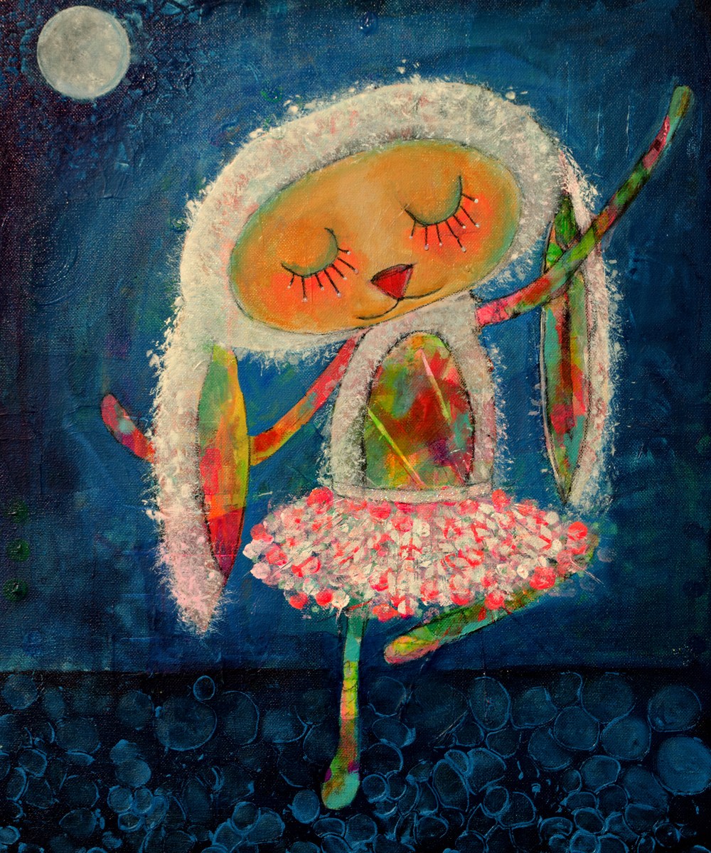 Mixed Media Painting | Penelope Bloom's Ballerina Bunny