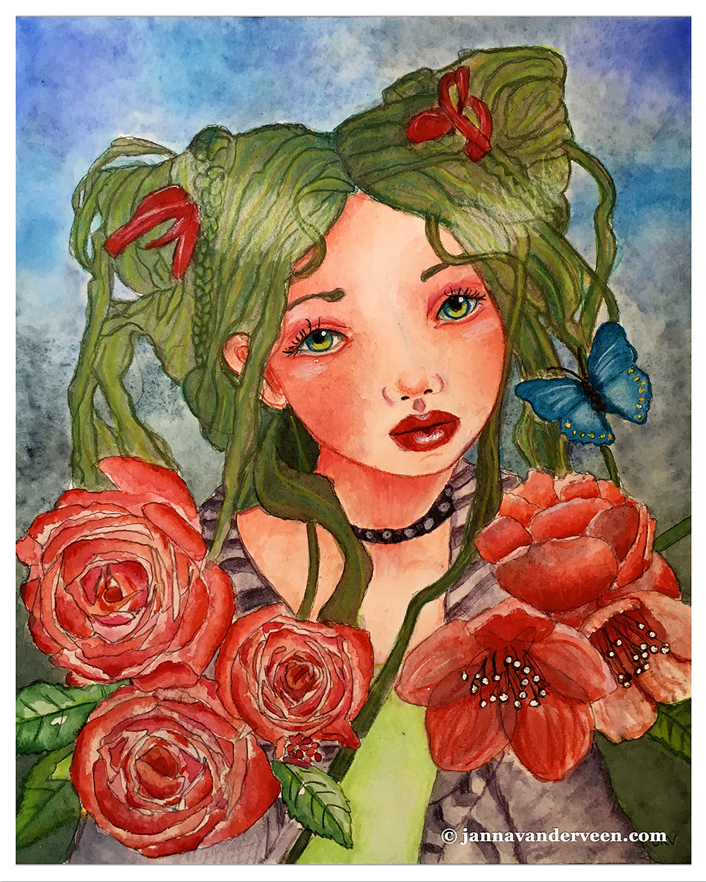 Watercolor Painting | Green-Haired Beauty