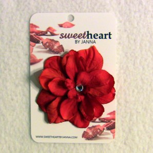 Almost as an afterthought, I sewed a small black clip on to the back of one of my sweetheart flowers. It looks so cute clipped on to the hat. Since the tube has two clips, the flower can be attached to either one. (whichever you prefer) but is large enough to cover both ends. With six different colored flowers to choose from, you are sure to find a wardrobe match.