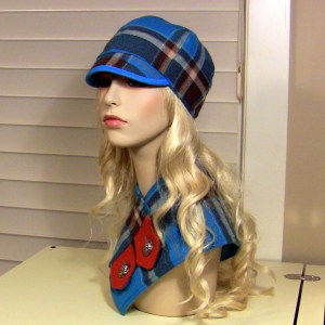 Since we were in Canada, we had to stop at a fabric store. 🙂 I picked up some lovely Canadian fabrics. This gorgeous royal blue twill coordinated perfectly with a matching cotton maple leaf fabric to make this newsboy hat.