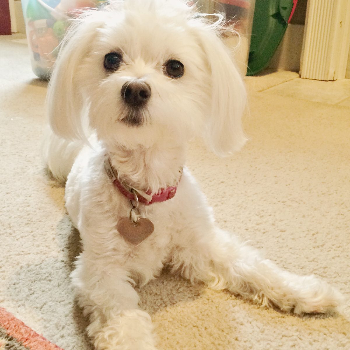 Lily Belle casts a ray of sunshine in our family. She soothes tears, inspires laughter, and spreads a whole lot of love with her unwavering loyalty and wet doggy kisses. She boldly sports hot-pink tipped ears as well as a matching fuzzy matching hair bow. Just looking at her makes me smile. May she brighten your day as well.